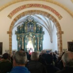 Partimos con buen tiempo, y un grupo bastante numeroso de la plaza de Cruces con dirección a la ermita-santuario de Santa Águeda, cuya festividad y romería se celebraba. La subida es bastante llevadera ya que no es muy pronunciada. Además el camino estaba muy concurrido de gente subiendo y bajando y de puestos con una gran variedad de mercancías.