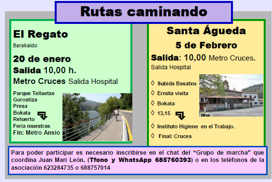 • Rutas caminando. El Regato 20 de Enero. Santa Águeda 5 de Febrero.